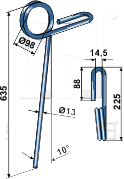Efterharvetand til Köckerling - Ny model Længde 635mm (fuld længde incl. monteringsøje) Tykkelse: 13mm Vinkel: 10 grader Monteringsøje: Ø98mm (indvendig mål)