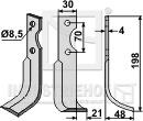 Fræserkniv højre til Agria 4x30x198mm Ø8,5