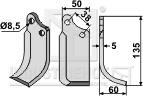 Fræserkniv højre til Agria 5x50x135mm Ø8,5