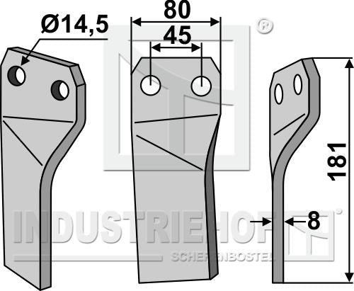 Fræsertand højre 80x181x8mm til Maschio Gaspardo