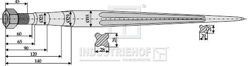 Frontlæssertand 820mm M22 Ø35
