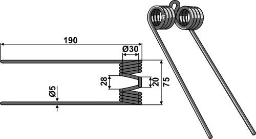 Rivefjeder til Claas, MF og Fendt 190mm Ø5mm lige ben