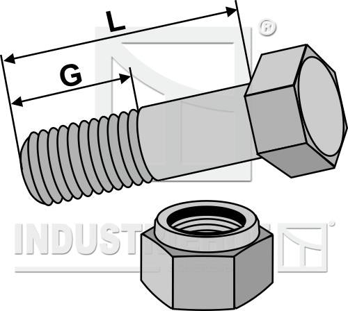 Sekskantbolt med låsemøtrik. M12x1,25x45 kvalitet 12.9 Fingevind - Gevindlængde 20mm