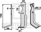 Fræserkniv venstre til Agria 4x30x155mm Ø8,5