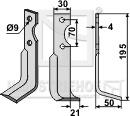 Fræserkniv højre til Agria 4x30x195mm Ø9