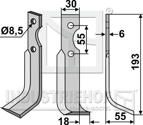 Fræserkniv højre Ø8,5mm til BCS, Ferrari og Pasquali øø55mm