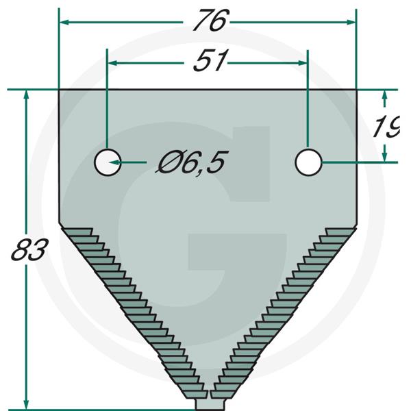 Knivblad til JD - øø51 mm - bredde 76 mm - tykkelse 2,7 mm - Ø6,5 mm - afstand midt hul til bagkant 19 mm