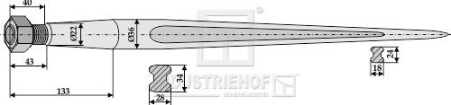 Frontlæsser tænder 900 M22 Ø36